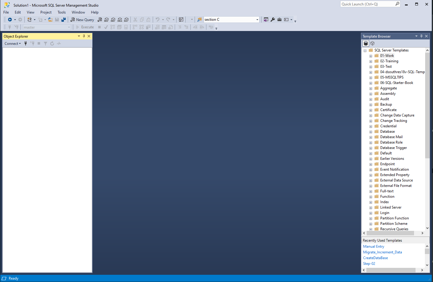 - Launch SSMS and recognize its main interface components: