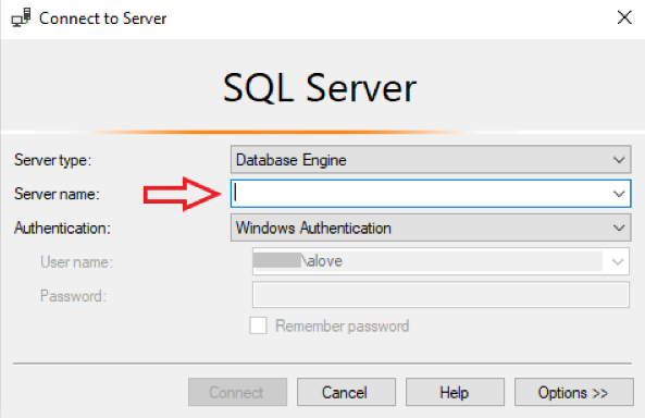 In the next dialouge box that appears, you can select the name of the SQL Server Instance you would like to work with.